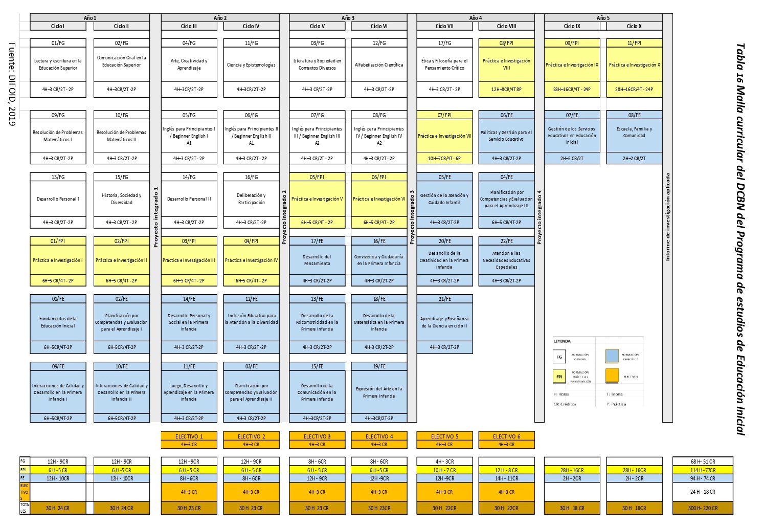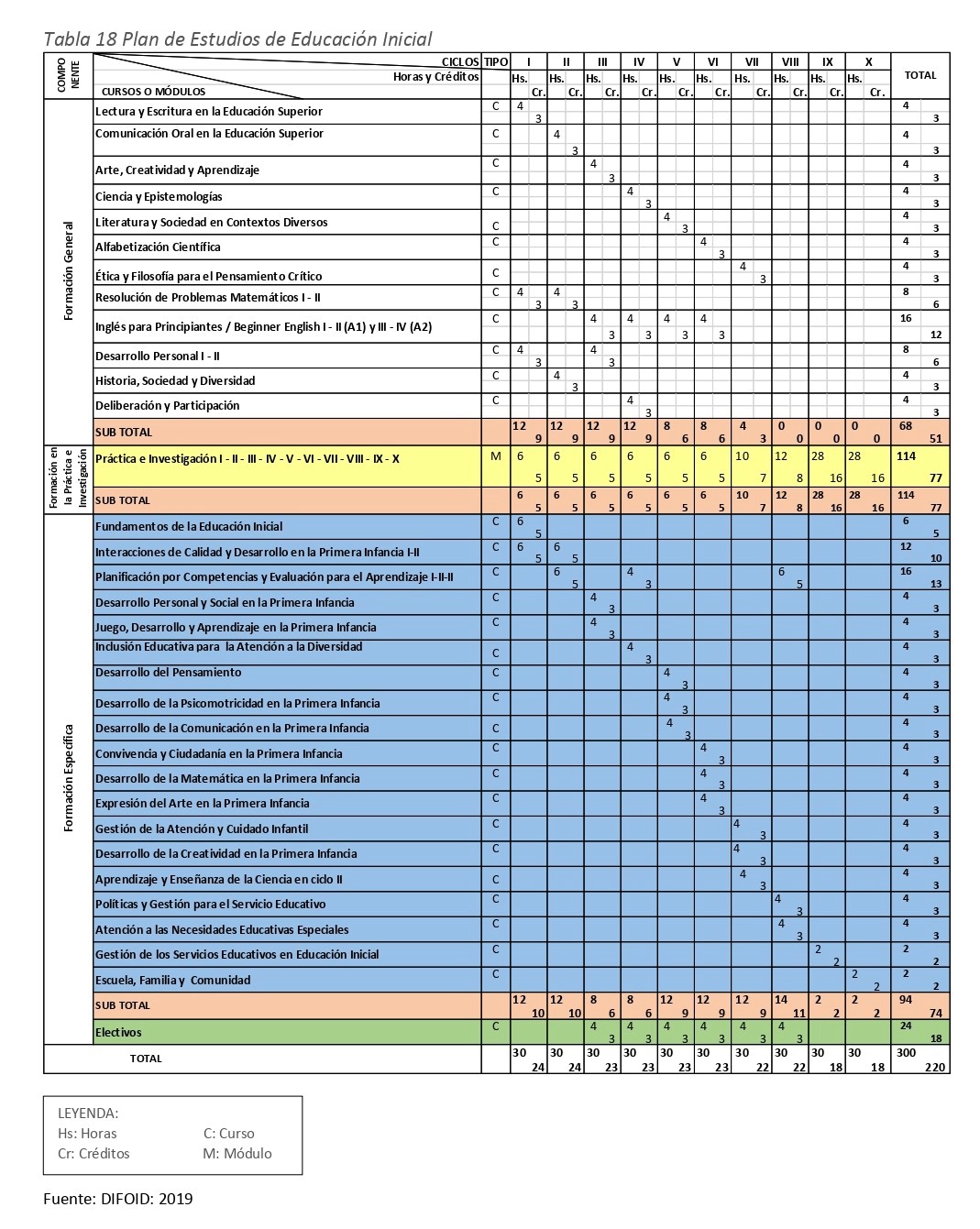 A continuación, se detalla la carga académica distribuida por cada ciclo de formación: