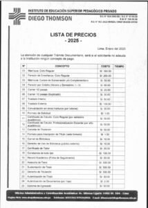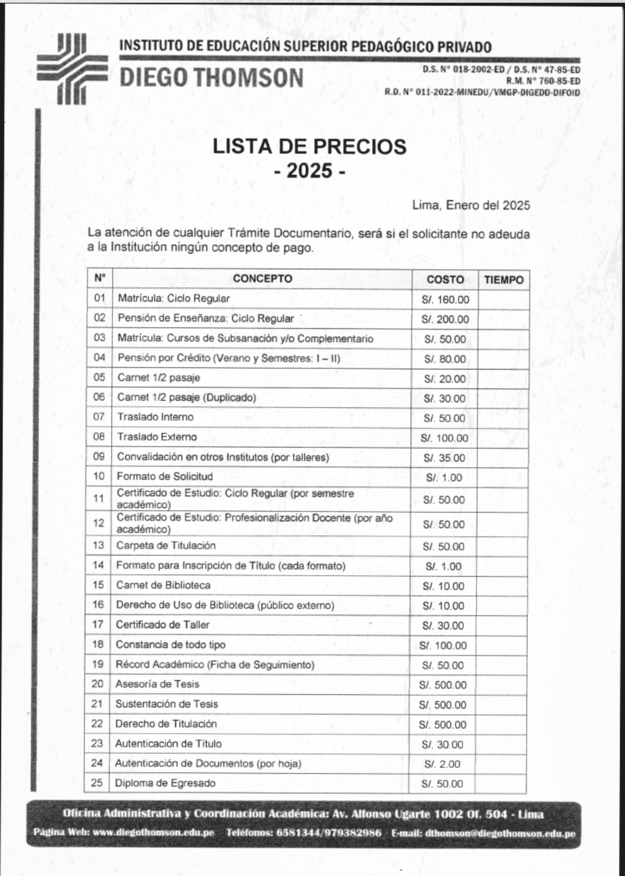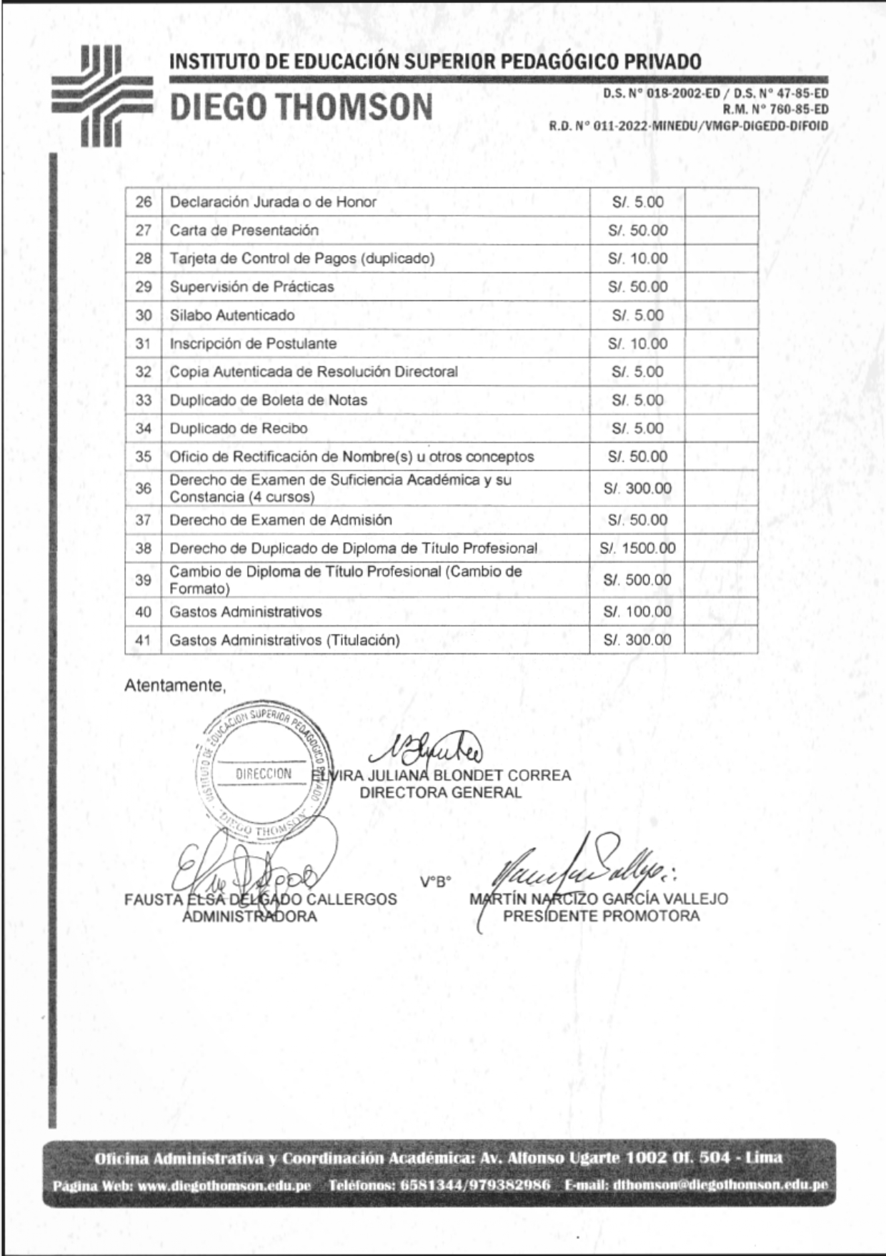 A continuación, se presenta el cuadro oficial de tasas y procedimientos vigentes: